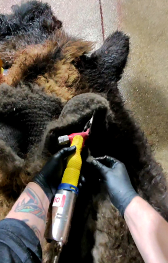 Fine undercoat is separated from guard hair.